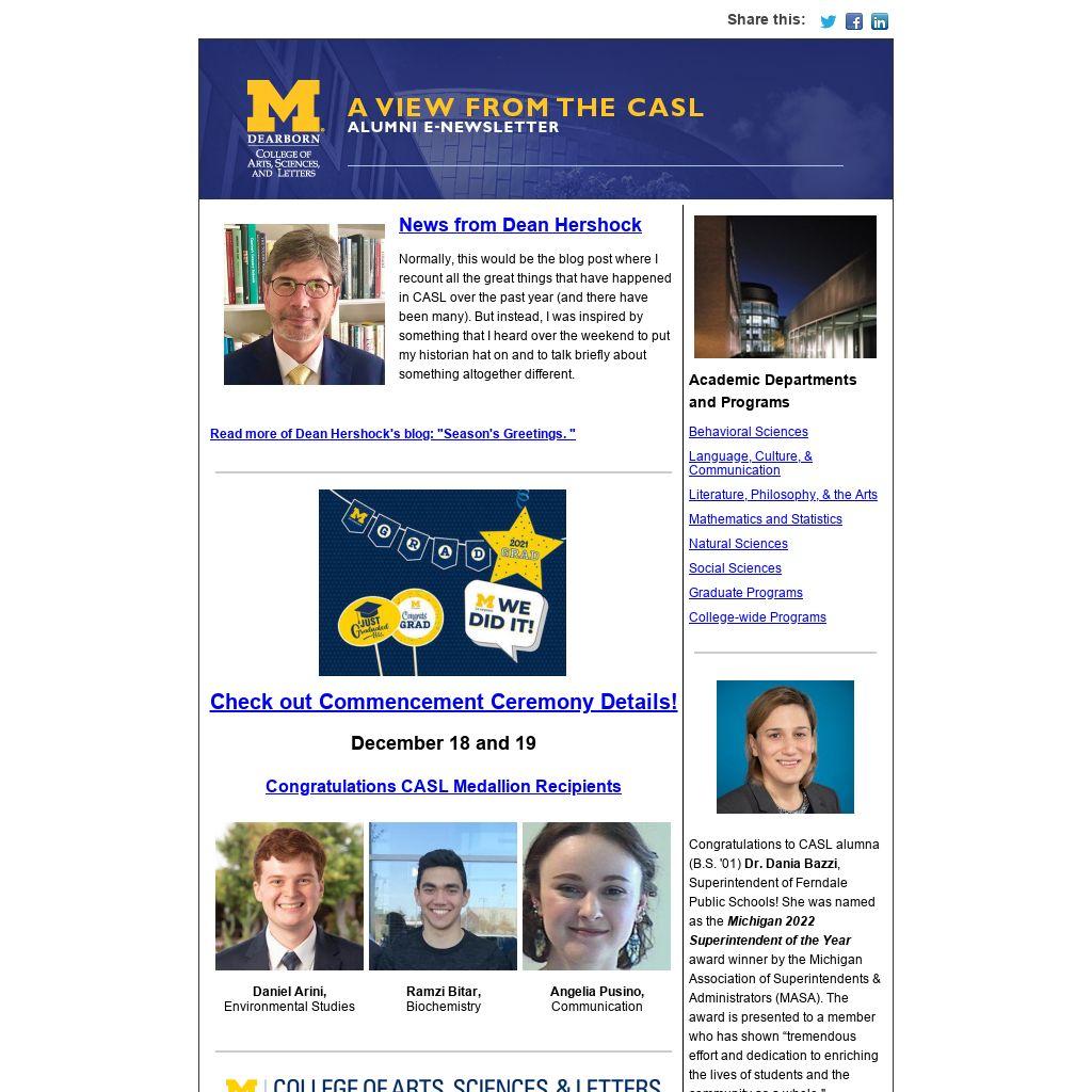 "A View from the CASL" is a quarterly e-newsletter for CASL alumni.