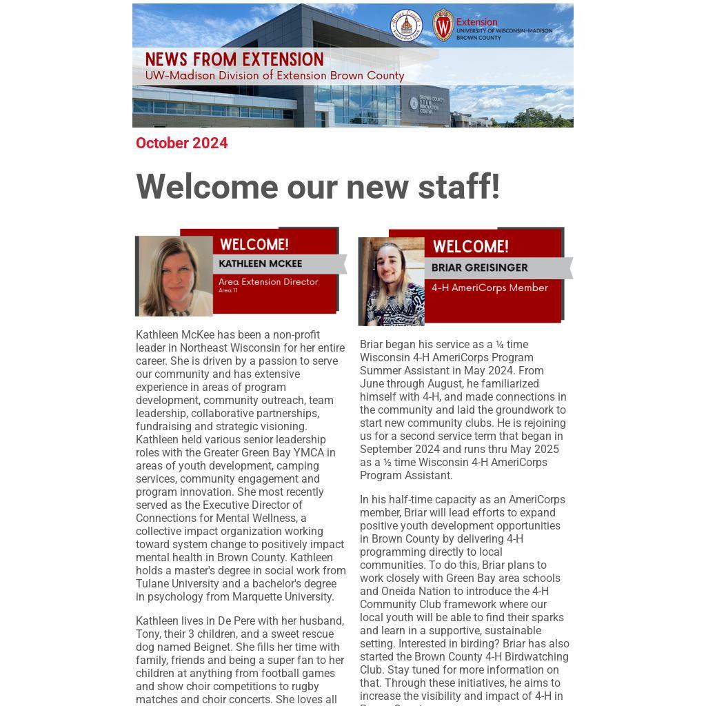 Connect with Kathleen at 920-391-4651 or kathleen.mckee@wisc.edu .