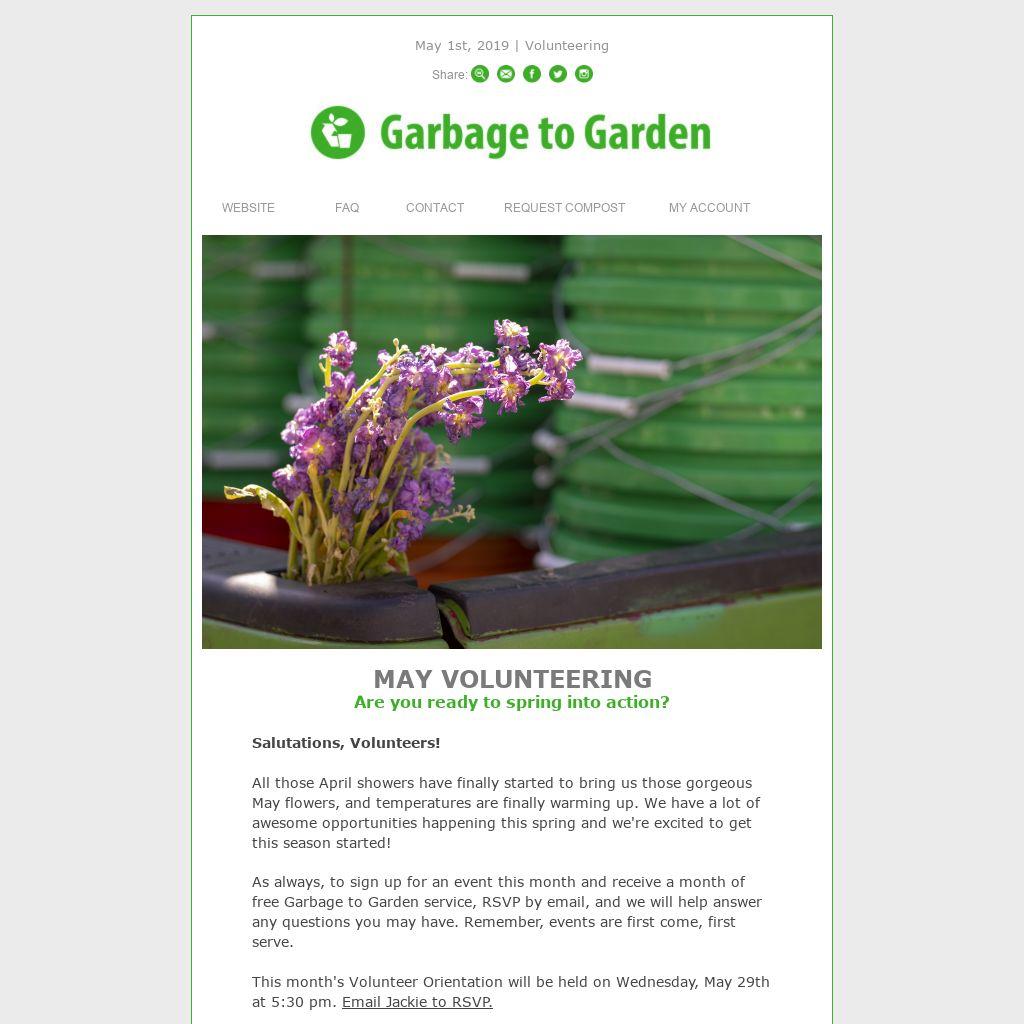 As always, to sign up for an event this month and receive a month of free Garbage to Garden service, RSVP by email, and we will help answer any questions you may have. Remember, events are first come, first serve.