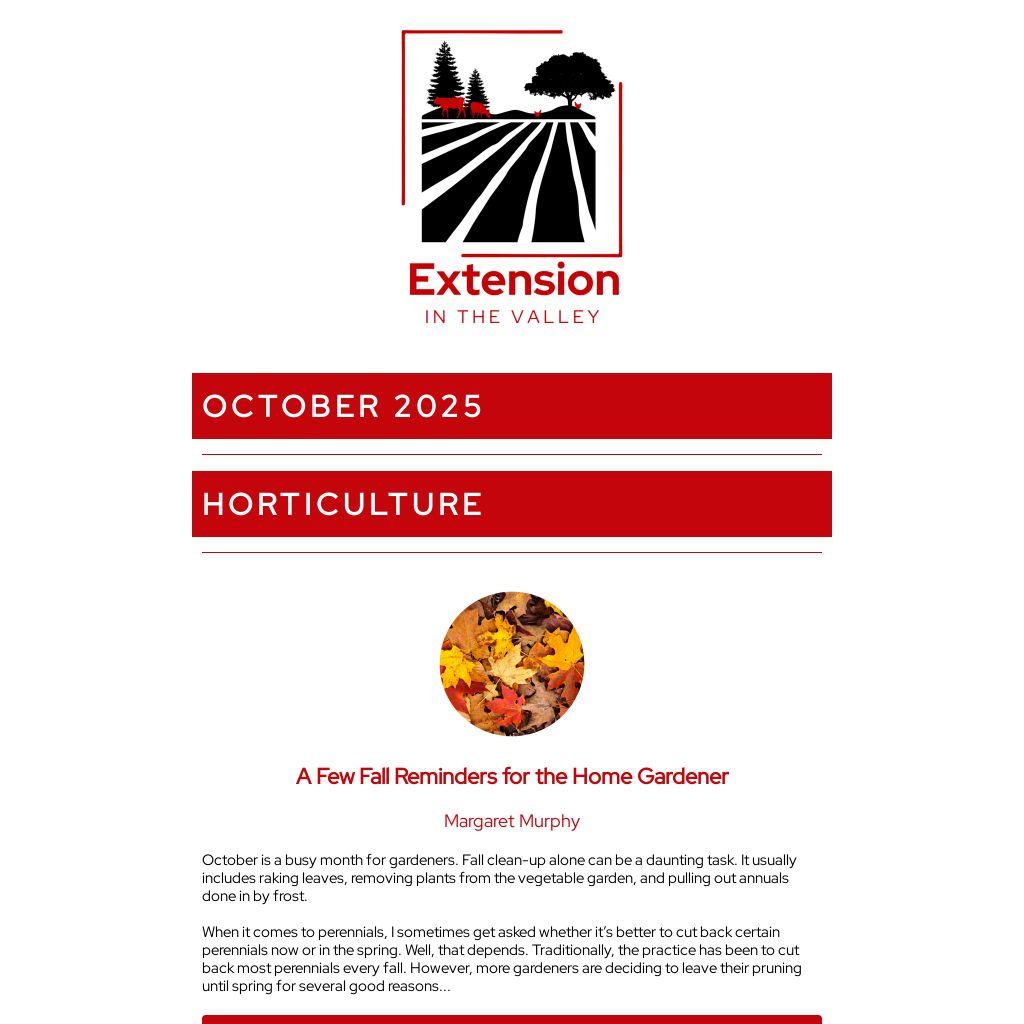October is a busy month for gardeners. Fall clean-up alone can be a daunting task. It usually includes raking leaves, removing plants from the vegetable garden, and pulling out annuals done in by frost.