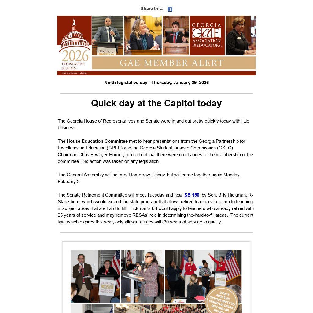 The Georgia House of Representatives and Senate were in and out pretty quickly today with little business.