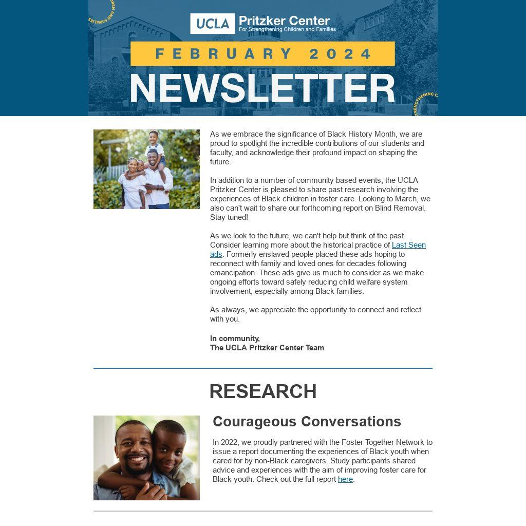 In addition to a number of community based events, the UCLA Pritzker Center is pleased to share past research involving the experiences of Black children in foster care. Looking to March, we also can't wait to share our forthcoming report on Blind Removal. Stay tuned!Â