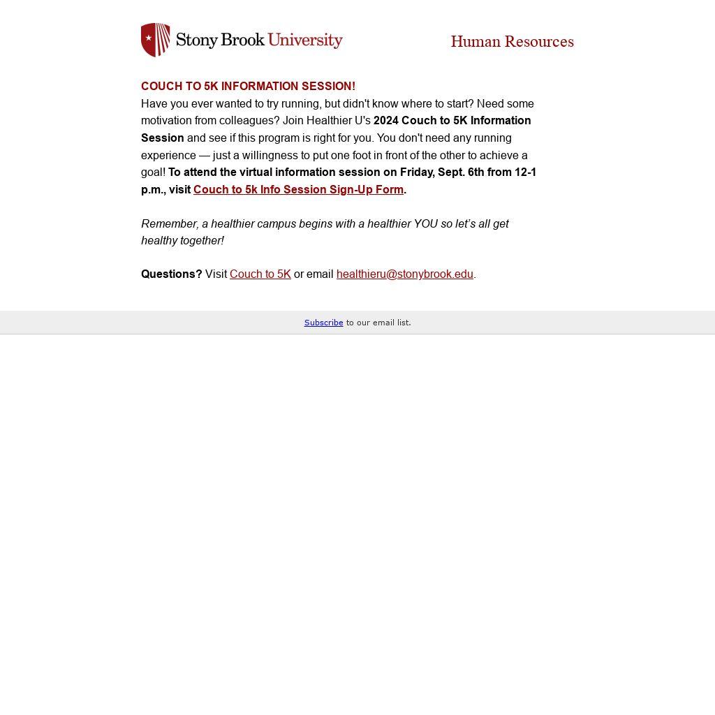 Questions? Visit Couch to 5K or email healthieru@stonybrook.edu.