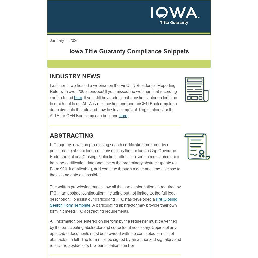 Iowa Title Guaranty Compliance Snippets