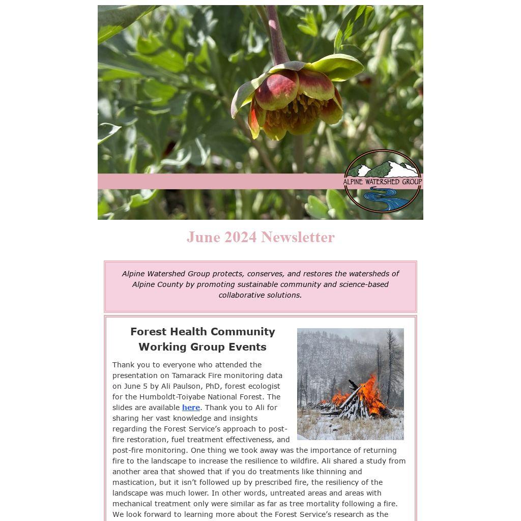 Upcoming AWG Events Wednesday, June 26, 5:00 p.m. – AWG Board Meeting at Markleeville Library Saturday, September 21 – Creek Day 2024