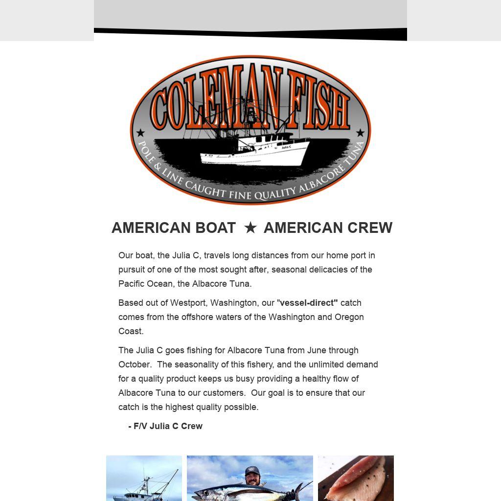 - Premium Coleman Fish canned Albacore: $160/case of 24, 6oz cans, lightly salted. Available year-round, while in stock.