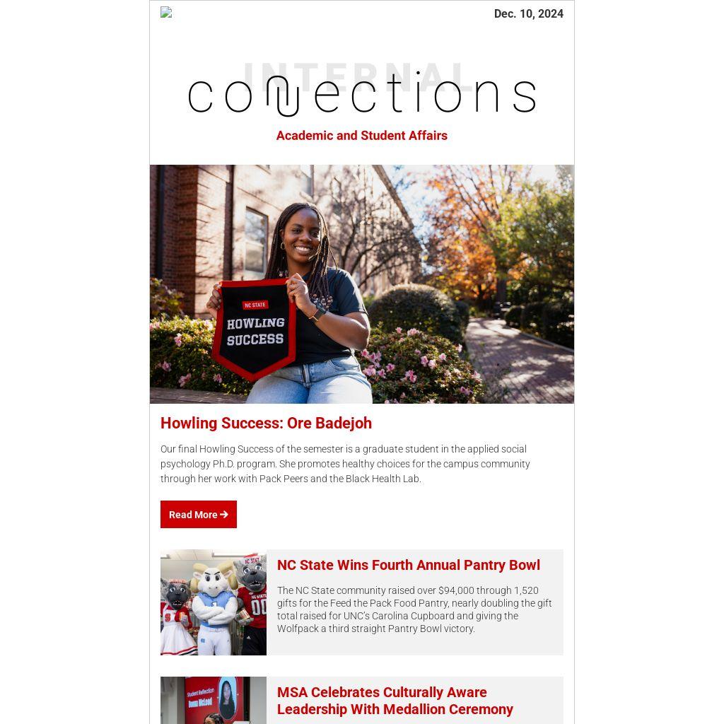 Our final Howling Success of the semester is a graduate student in the applied social psychology Ph.D. program. She promotes healthy choices for the campus community through her work with Pack Peers and the Black Health Lab.