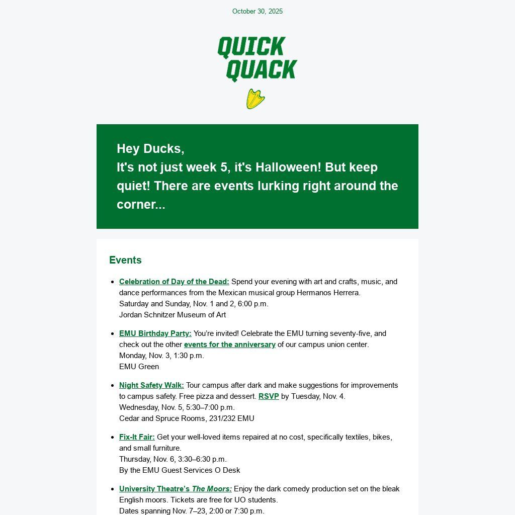 Halloween safety: Review the email for reminders on how to have a safe, courteous, and fun weekend.