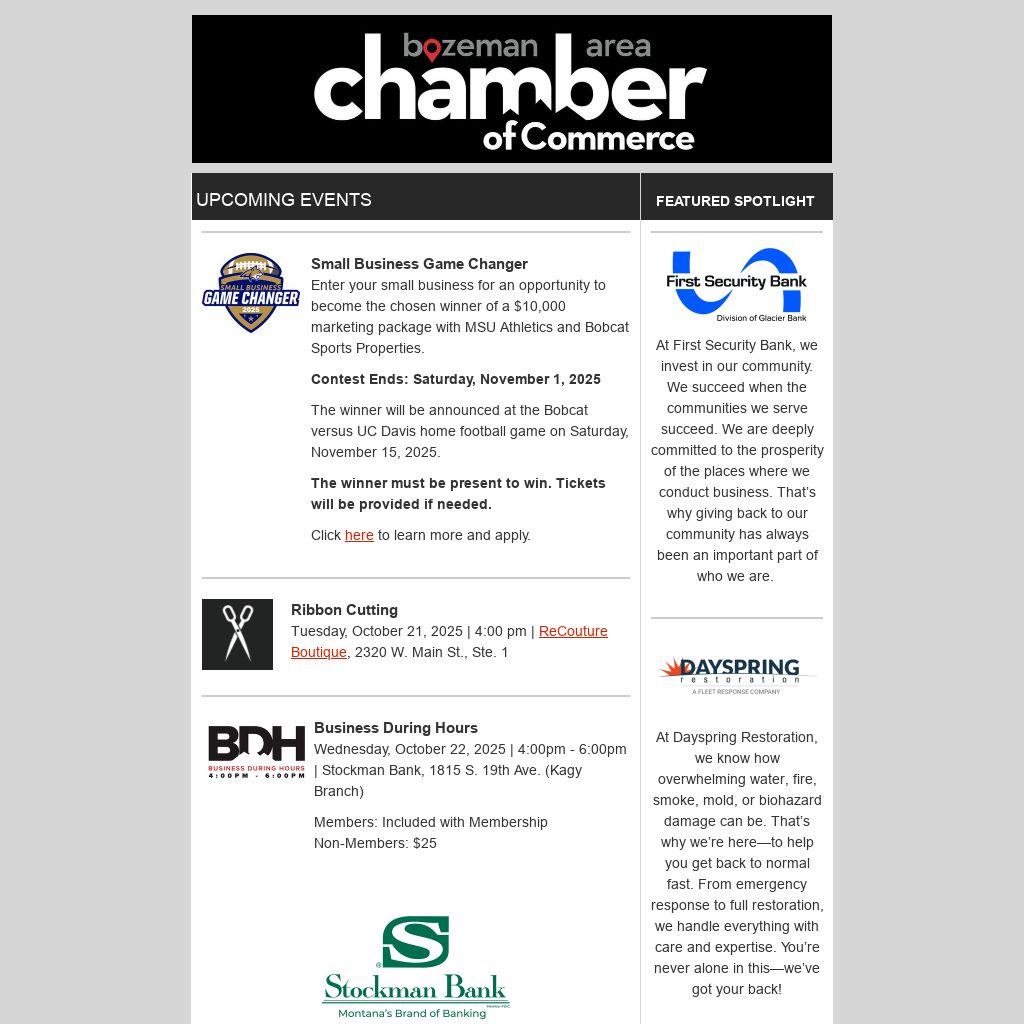 Business During Hours Wednesday, October 22, 2025 | 4:00pm - 6:00pm | Stockman Bank, 1815 S. 19th Ave. (Kagy Branch)
