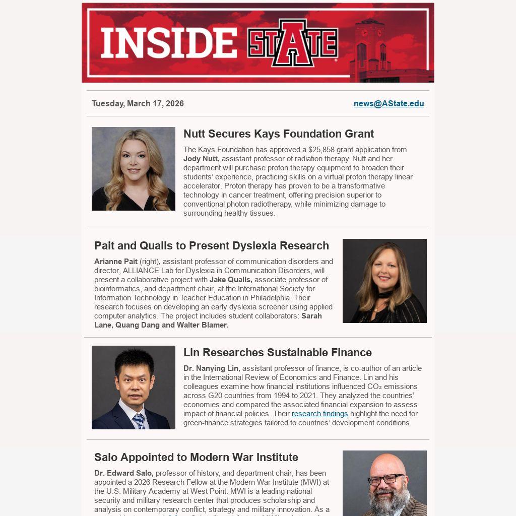 The Kays Foundation has approved a $25,858 grant application from Jody Nutt, assistant professor of radiation therapy. Nutt and her department will purchase proton therapy equipment to broaden their students’ experience, practicing skills on a virtual proton therapy linear accelerator. Proton therapy has proven to be a transformative technology in cancer treatment, offering precision superior to conventional photon radiotherapy, while minimizing damage to surrounding healthy tissues.