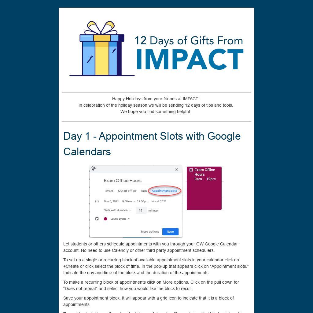 To enable students or others to schedule appointments with you during that block, click on the block in your calendar and then click on “Go to appointment page for this calendar.” Copy and paste the url from that page and share it with your students or others to let them schedule the appointments themselves.