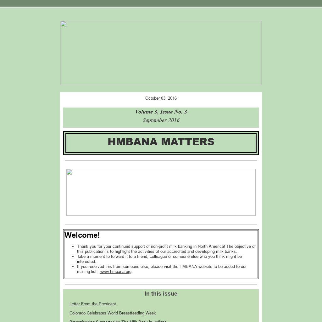 | Welcome! - Thank you for your continued support of non-profit milk banking in North America! The objective of this publication is to highlight the activities of our accredited and developing milk banks.