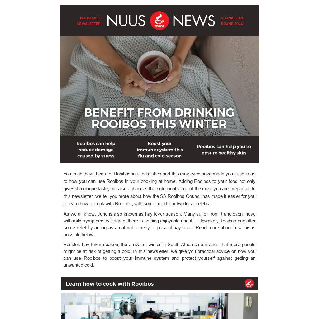 Besides hay fever season, the arrival of winter in South Africa also means that more people might be at risk of getting a cold. In this newsletter, we give you practical advice on how you can use Rooibos to boost your immune system and protect yourself against getting an unwanted cold.