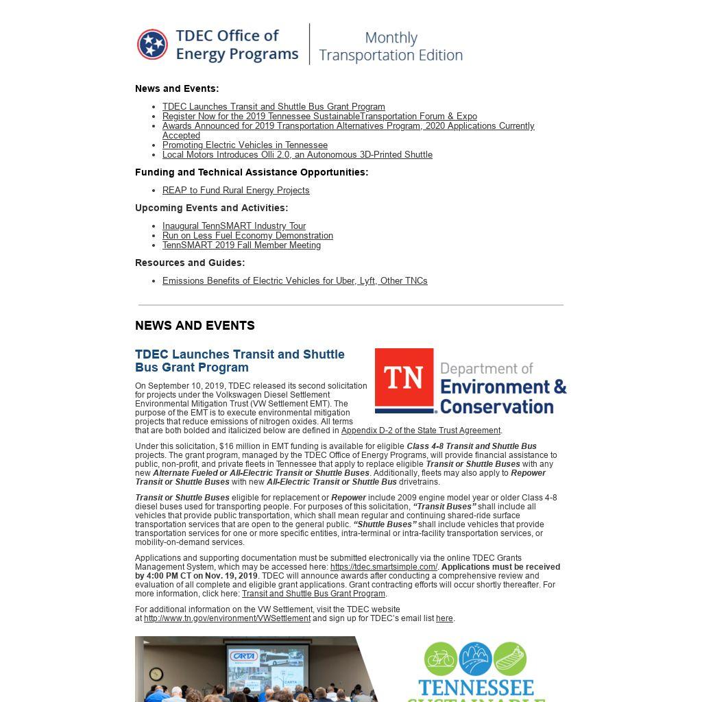 | TDEC Launches Transit and Shuttle Bus Grant Program