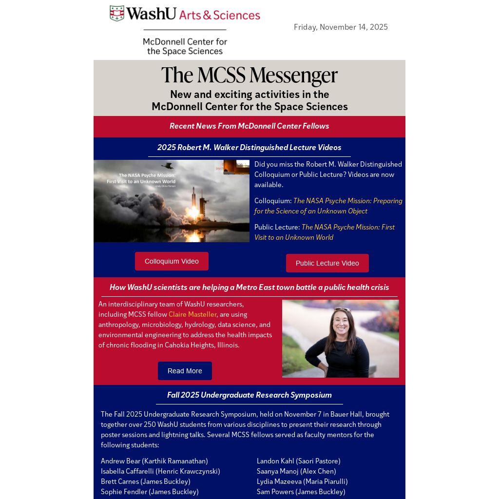 MCSS is hiring a postdoctoral fellow in the broad field of space sciences. We welcome applicants with interests in Astromaterials, Cosmochemistry, or Meteoritics; Experimental, Theoretical, or Observational Astrophysics; Planetary Science; Particle and Nuclear Physics, Cosmology and Gravitation; and Earth as a Planet. In their application materials, the candidate should describe their research interests and list potential collaborators from among the faculty fellows of the MCSS.