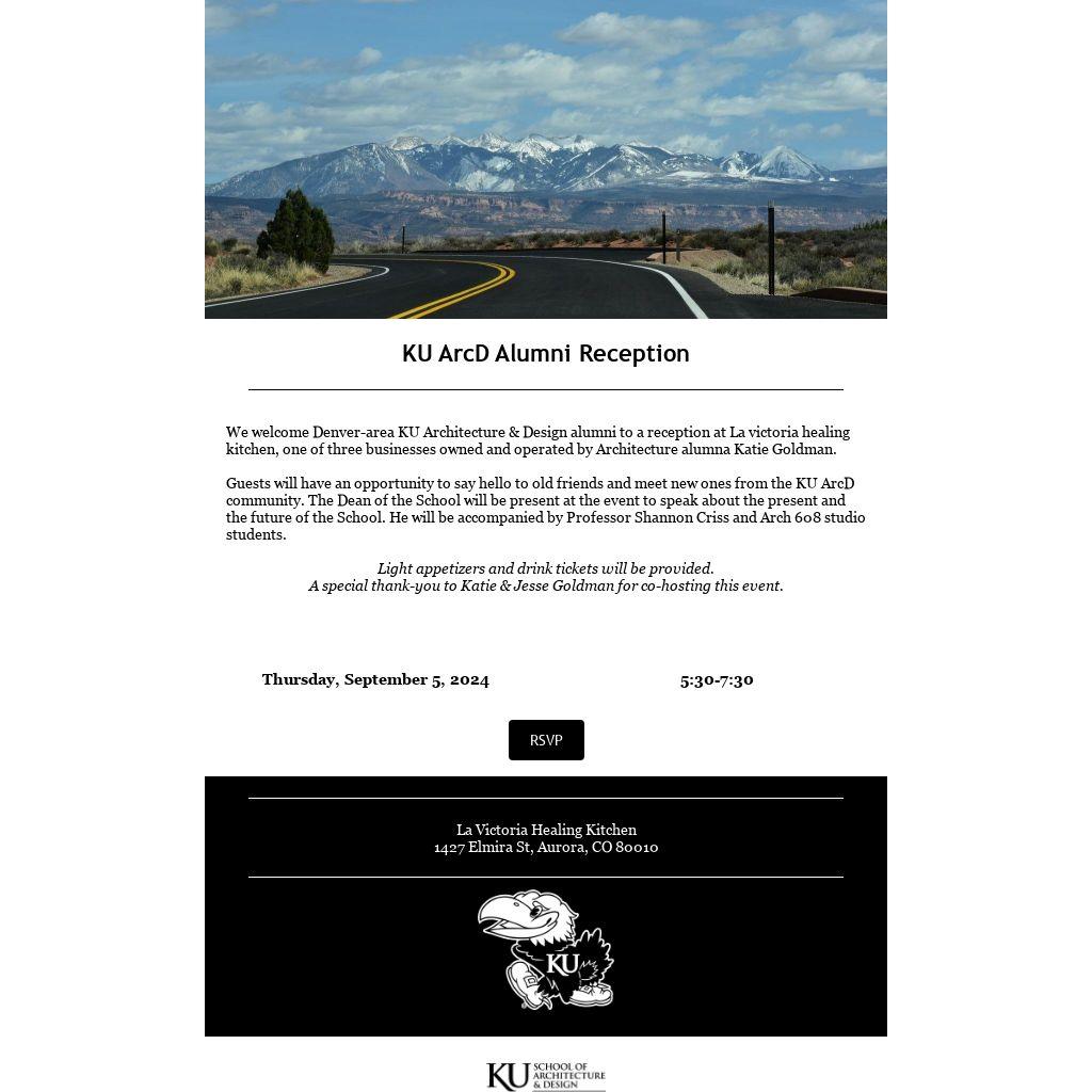 Guests will have an opportunity to say hello to old friends and meet new ones from the KU ArcD community. The Dean of the School will be present at the event to speak about the present and the future of the School. He will be accompanied by Professor Shannon Criss and Arch 608 studio students.