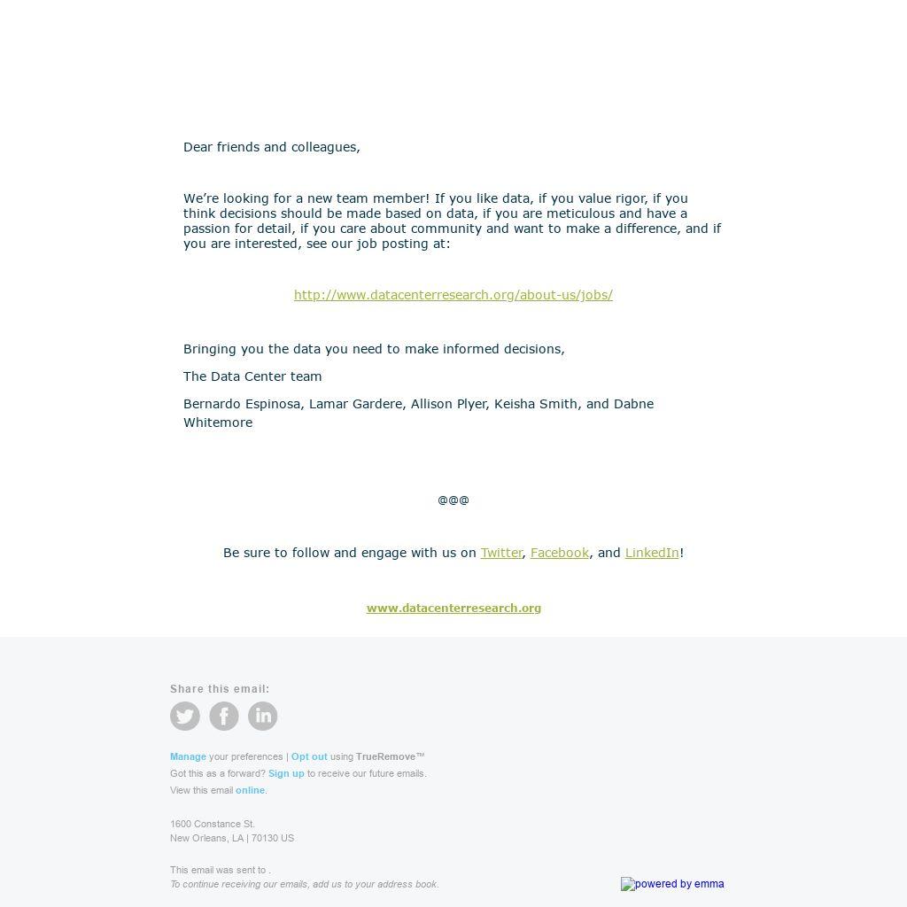 We’re looking for a new team member! If you like data, if you value rigor, if you think decisions should be made based on data, if you are meticulous and have a passion for detail, if you care about community and want to make a difference, and if you are interested, see our job posting at: