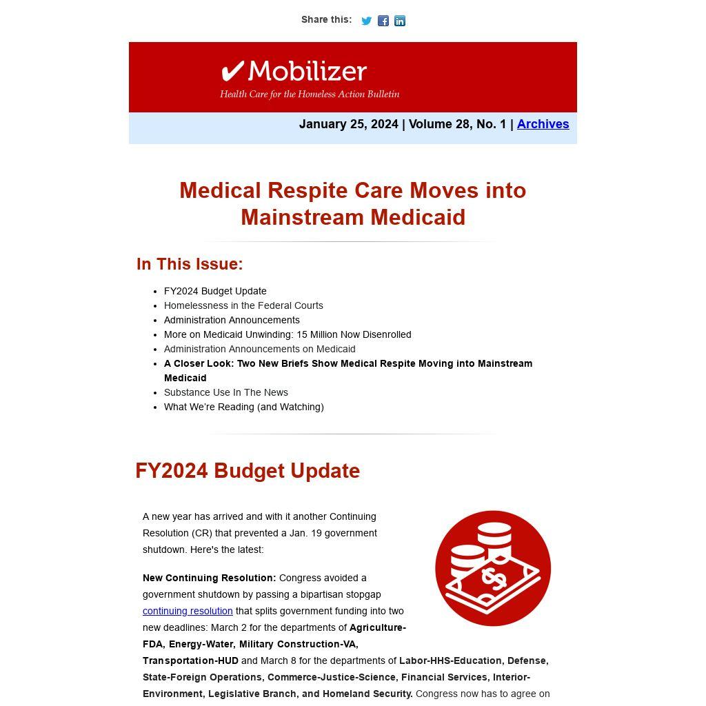- A Closer Look: Two New Briefs Show Medical Respite Moving into Mainstream Medicaid