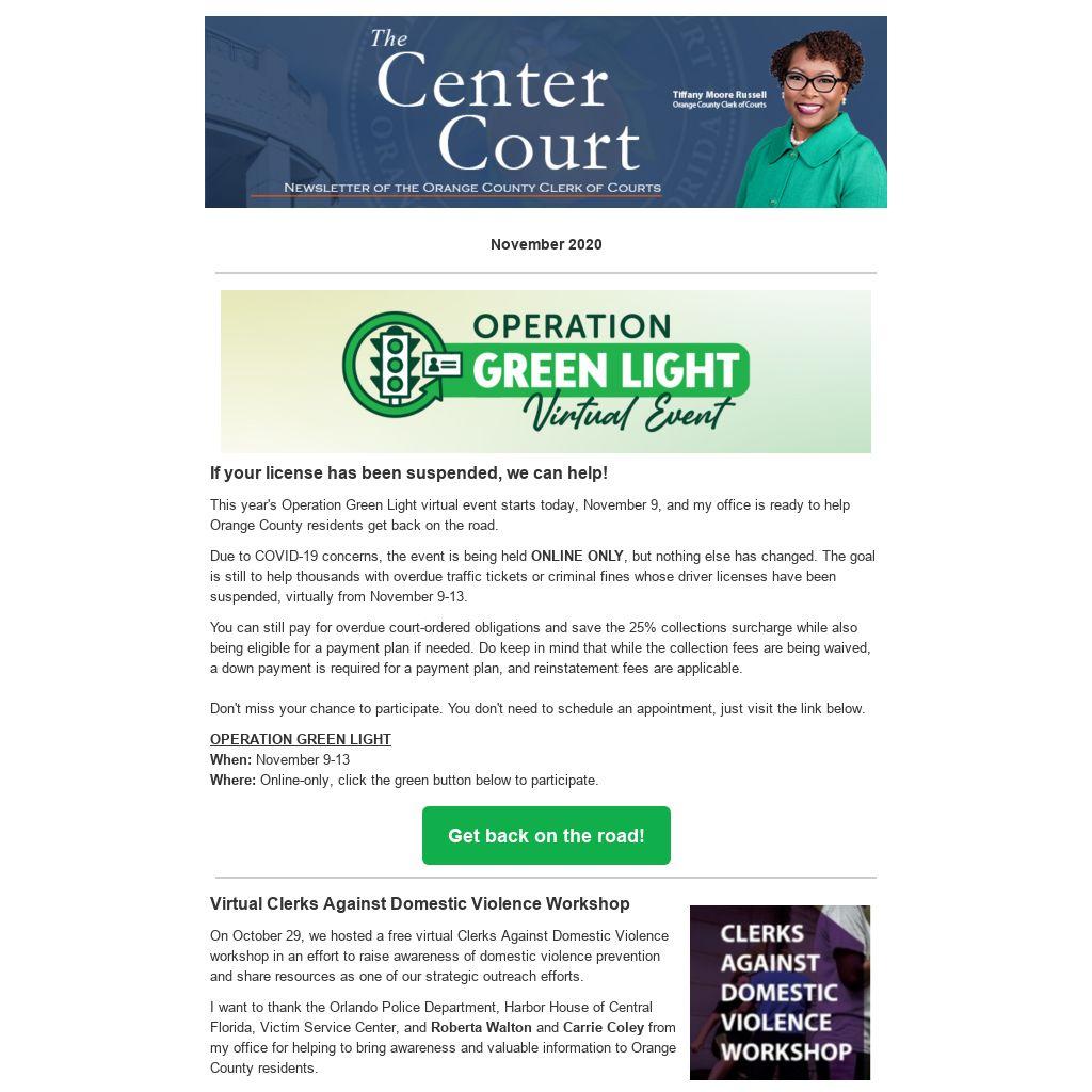 This year's Operation Green Light virtual event starts today, November 9, and my office is ready to help Orange County residents get back on the road.