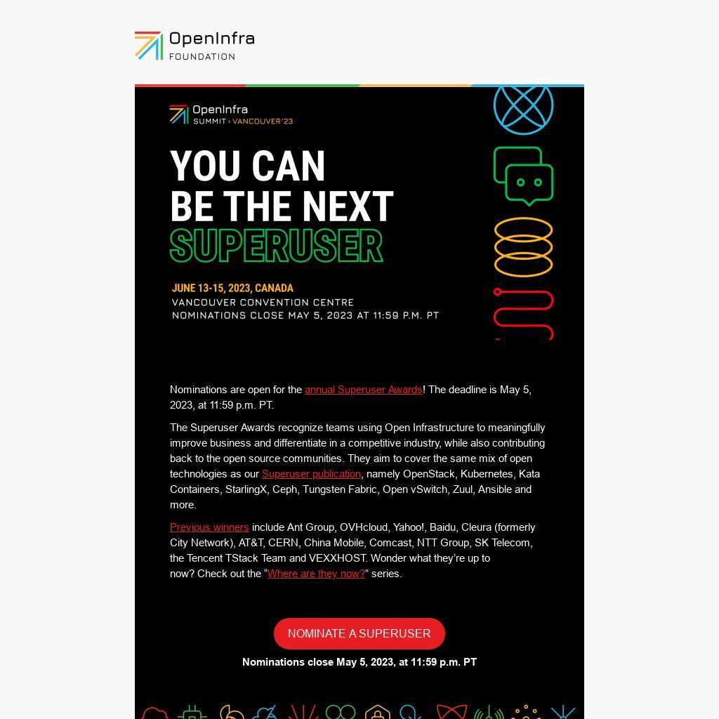 Nominations are open for the annual Superuser Awards! The deadline is May 5, 2023, at 11:59 p.m. PT.
