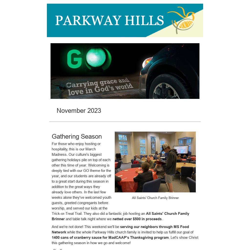 November 19: Church Family Thanksgiving, 6pm--Bring a side and/or dessert to share!