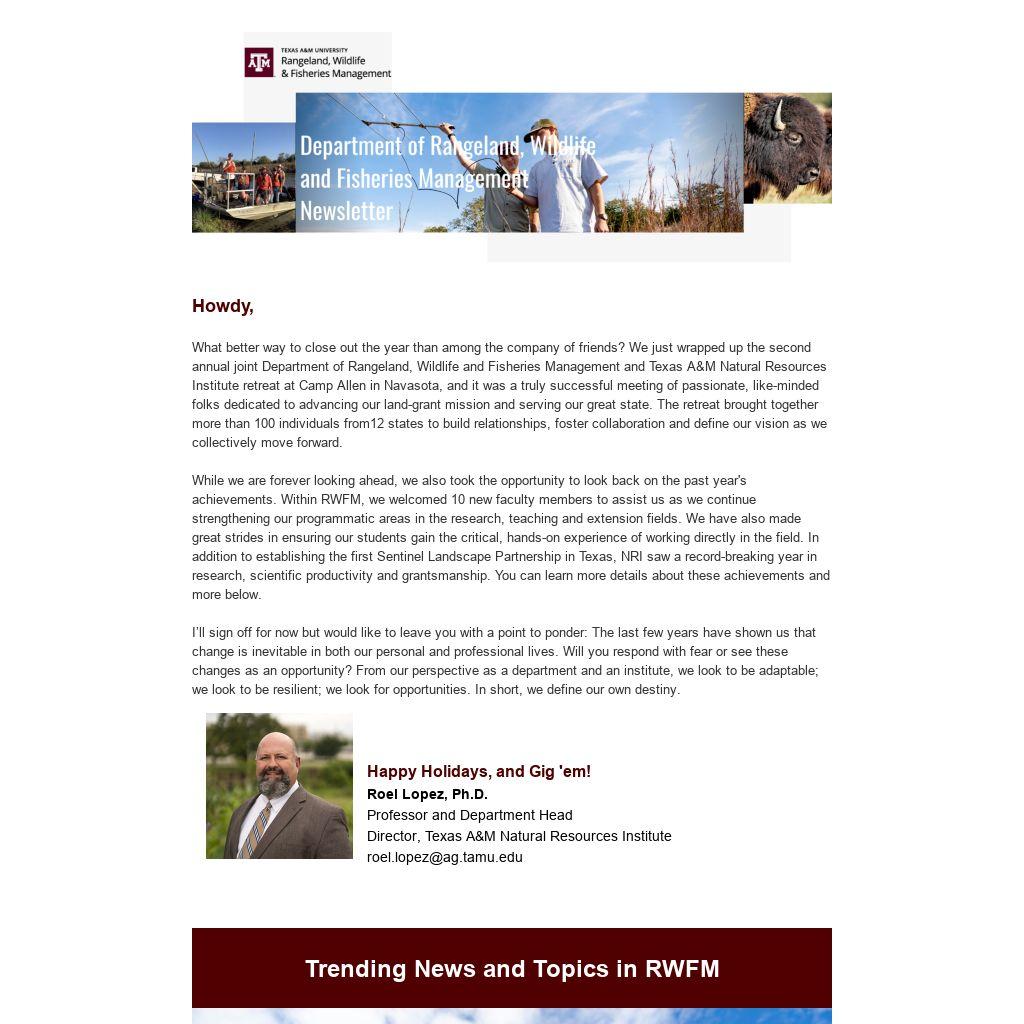 Happy Holidays, and Gig 'em!Roel Lopez, Ph.D.