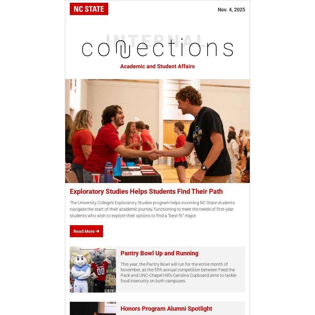 The University College’s Exploratory Studies program helps incoming NC State students navigate the start of their academic journey, functioning to meet the needs of first-year students who wish to explore their options to find a “best-fit” major.