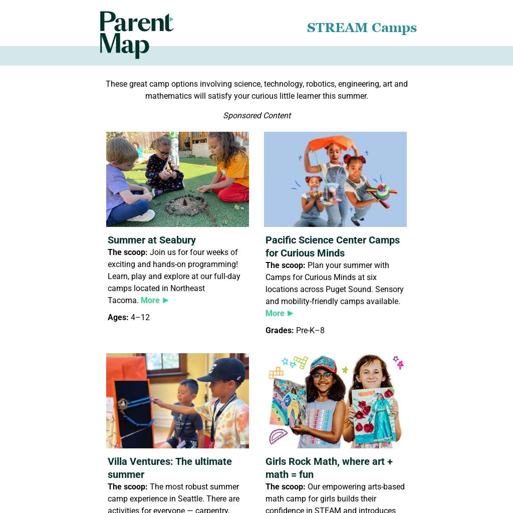 The scoop: Join us for four weeks of exciting and hands-on programming! Learn, play and explore at our full-day camps located in Northeast Tacoma. More ►