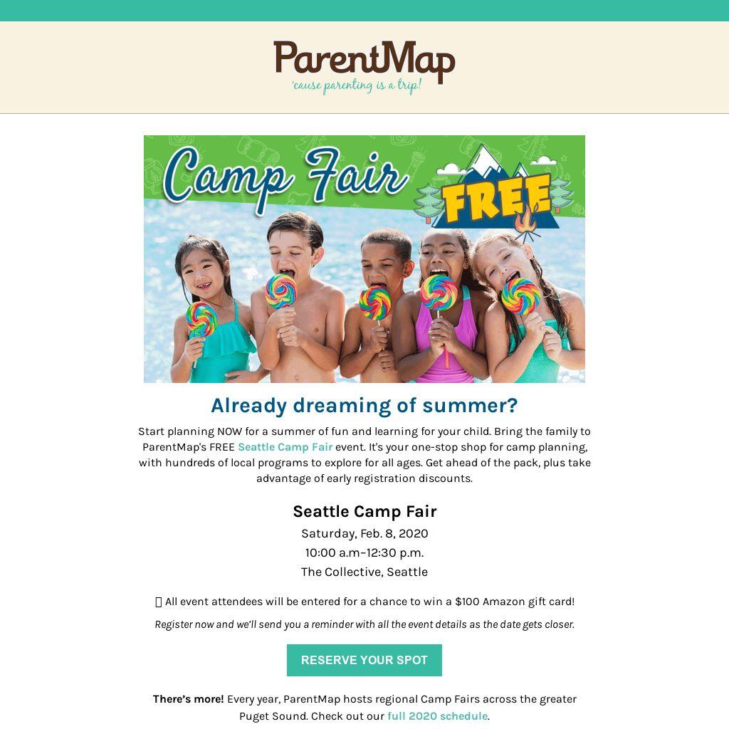 Start planning NOW for a summer of fun and learning for your child. Bring the family to ParentMap's FREE Seattle Camp Fair event. It's your one-stop shop for camp planning, with hundreds of local programs to explore for all ages. Get ahead of the pack, plus take advantage of early registration discounts.