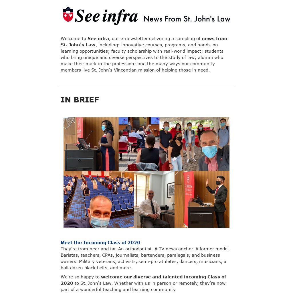 We're so happy to welcome our diverse and talented incoming Class of 2020 to St. John's Law. Whether with us in person or remotely, they're now part of a wonderful teaching and learning community.
