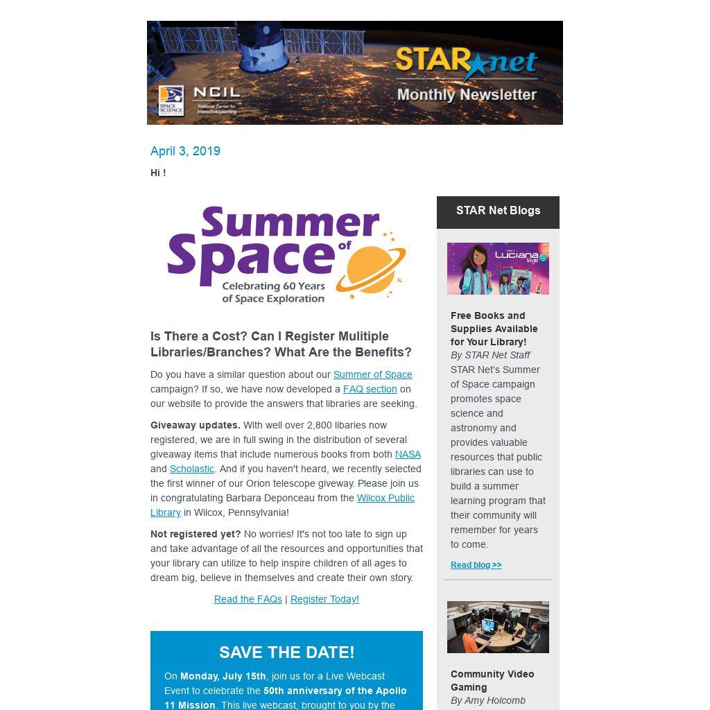 STAR Net’s Summer of Space campaign promotes space science and astronomy and provides valuable resources that public libraries can use to build a summer learning program that their community will remember for years to come.