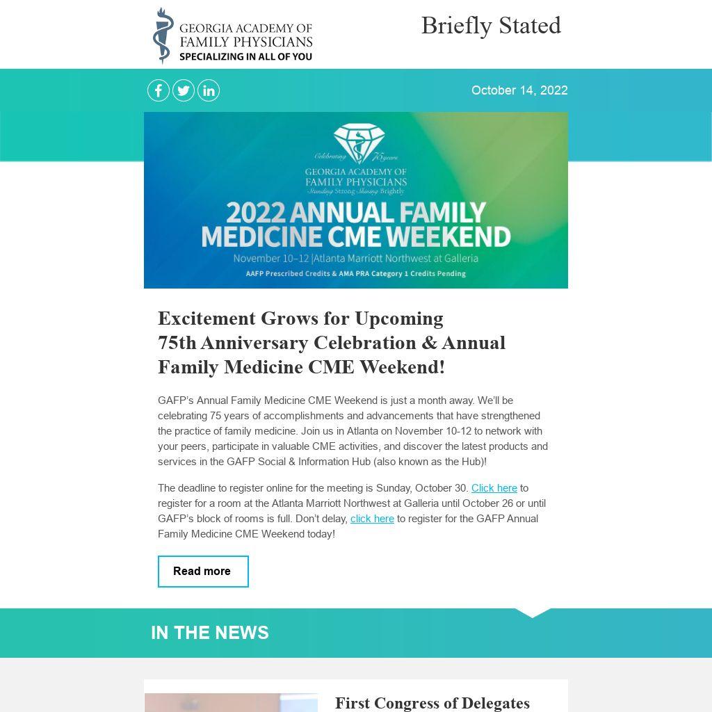 Copyright 2022 Georgia Academy of Family Physicians To ensure that e-mails from GAFP are delivered to your inbox, please add gafp@gafp.org to your address book or list of approved senders.