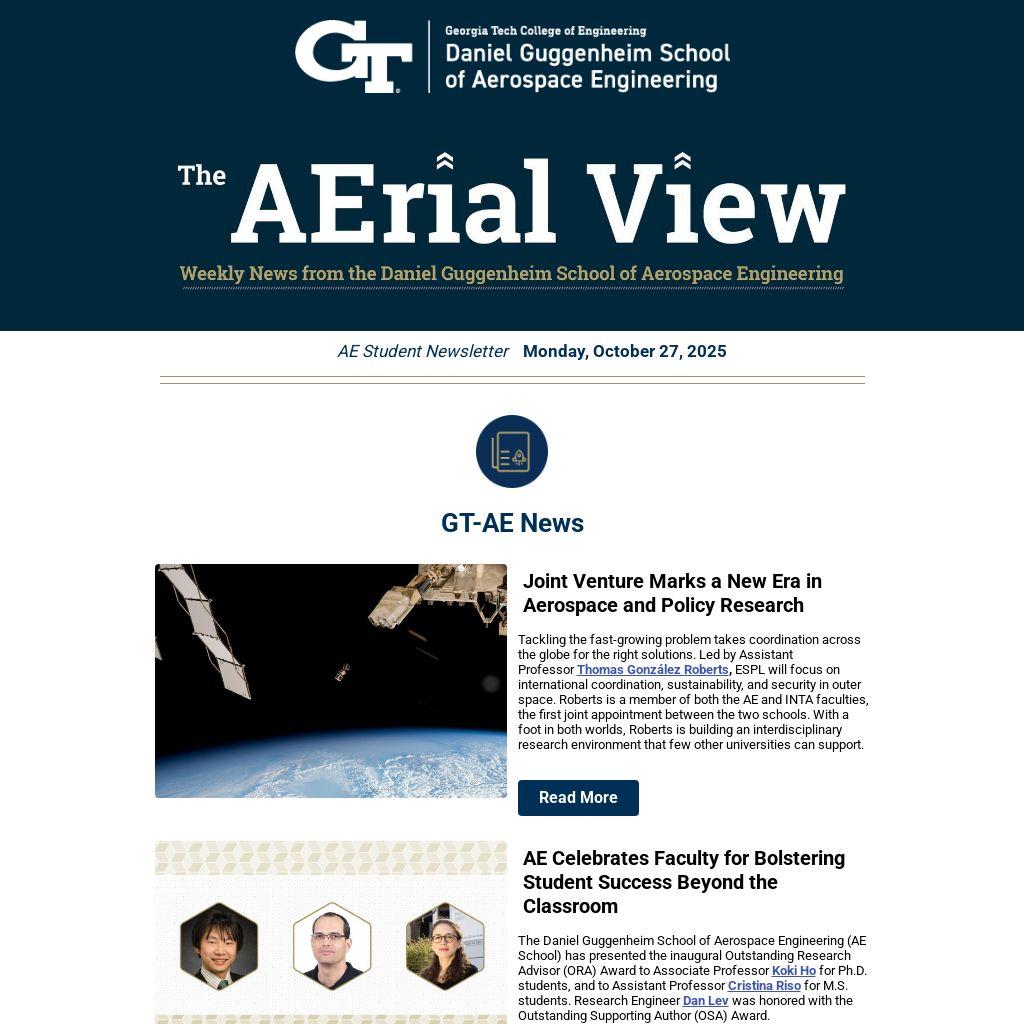 The Daniel Guggenheim School of Aerospace Engineering (AE School) has presented the inaugural Outstanding Research Advisor (ORA) Award to Associate Professor Koki Ho for Ph.D. students, and to Assistant Professor Cristina Riso for M.S. students. Research Engineer Dan Lev was honored with the Outstanding Supporting Author (OSA) Award.