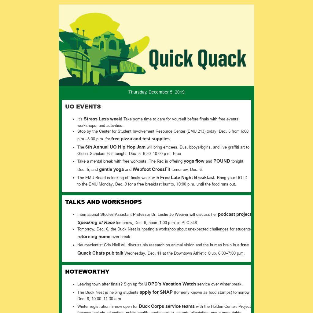 Tomorrow, Dec. 6, the Duck Nest is hosting a workshop about unexpected challenges for students returning home over break.