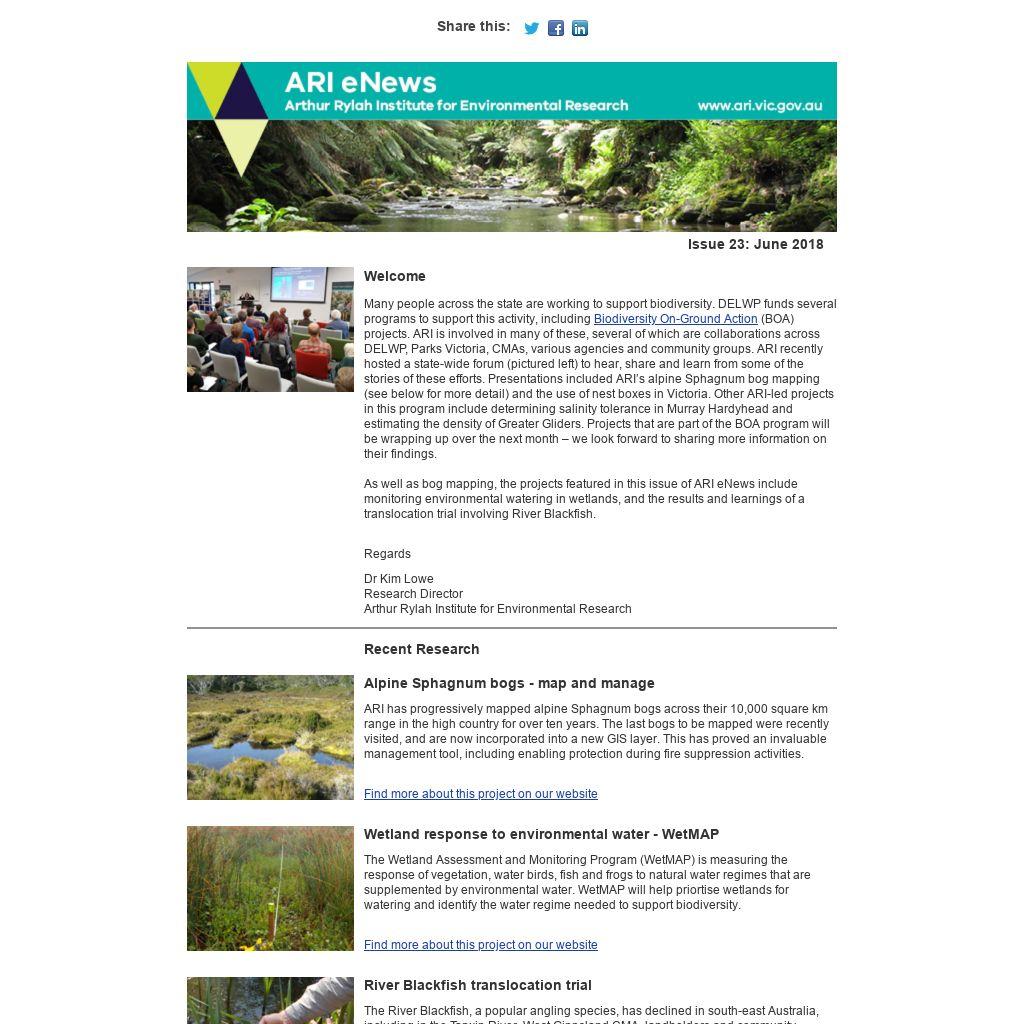 To receive ARI seminar series email alerts, including webinar (live online viewing) details and follow-up summaries, email us at research.ari@delwp.vic.gov.au
