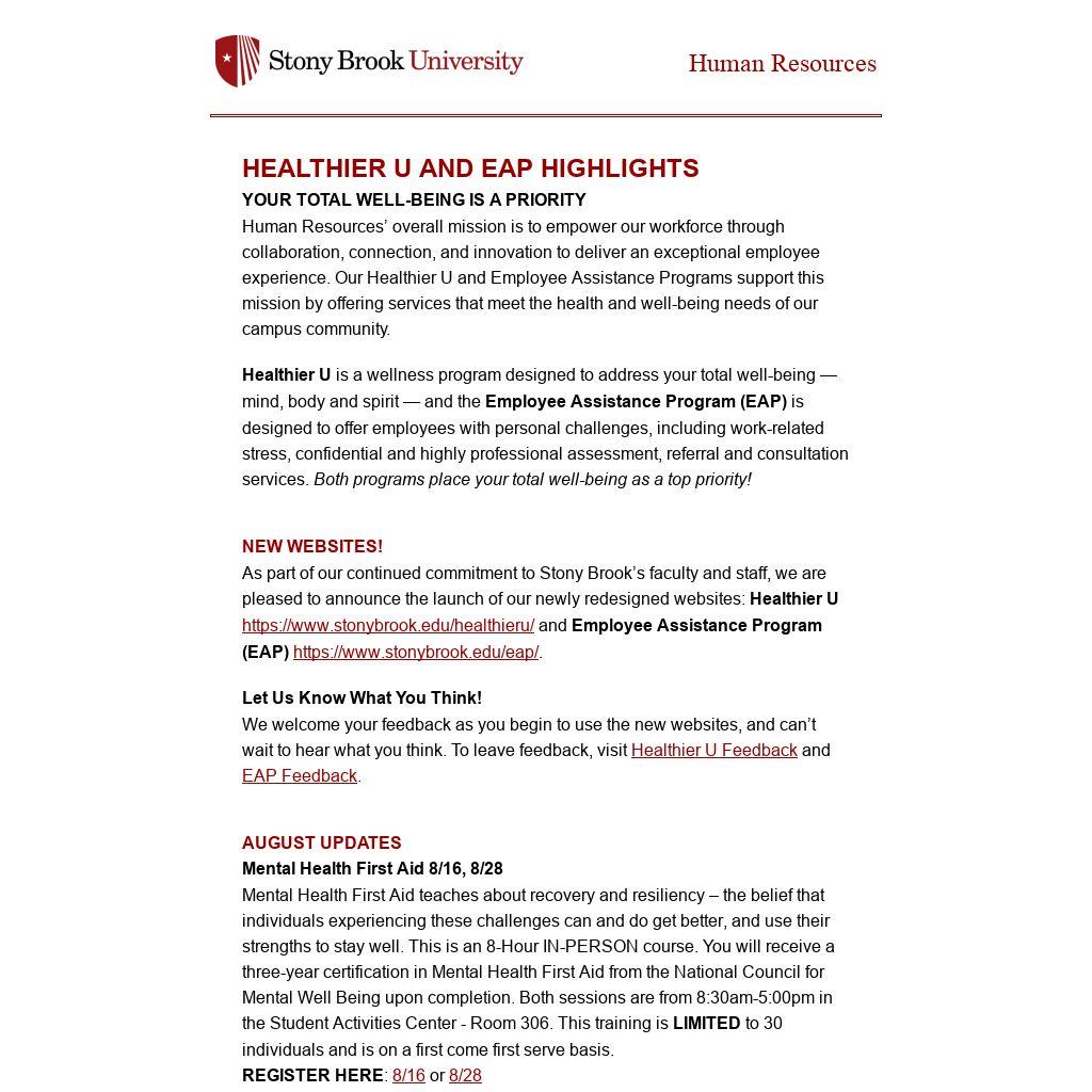 On 8/9 and 8/23 you can join Healthier U by the Academic Mall fountain at 12 noon for a mindful 30-minute walk around campus.