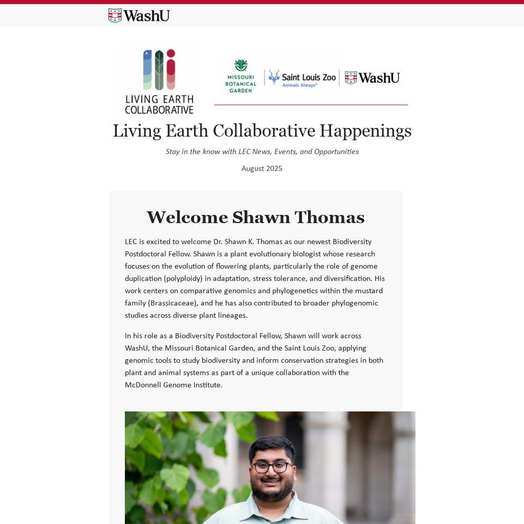 LEC is excited to welcome Dr. Shawn K. Thomas as our newest Biodiversity Postdoctoral Fellow. Shawn is a plant evolutionary biologist whose research focuses on the evolution of flowering plants, particularly the role of genome duplication (polyploidy) in adaptation, stress tolerance, and diversification. His work centers on comparative genomics and phylogenetics within the mustard family (Brassicaceae), and he has also contributed to broader phylogenomic studies across diverse plant lineages.