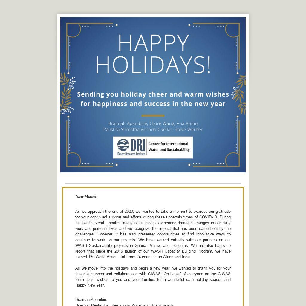 As we move into the holidays and begin a new year, we wanted to thank you for your financial support and collaborations with CIWAS. On behalf of everyone on the CIWAS team, best wishes to you and your families for a wonderful safe holiday season and Happy New Year.