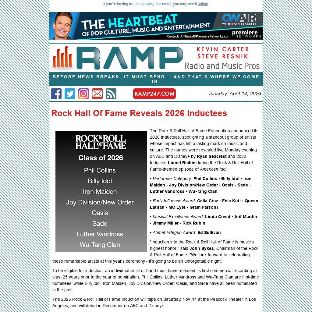 The Rock & Roll Hall of Fame Foundation announced its 2026 Inductees, spotlighting a standout group of artists whose impact has left a lasting mark on music and culture. The names were revealed live Monday evening on ABC and Disney+ by Ryan Seacrest and 2022 Inductee Lionel Richie during the Rock & Roll Hall of Fame-themed episode of American Idol.