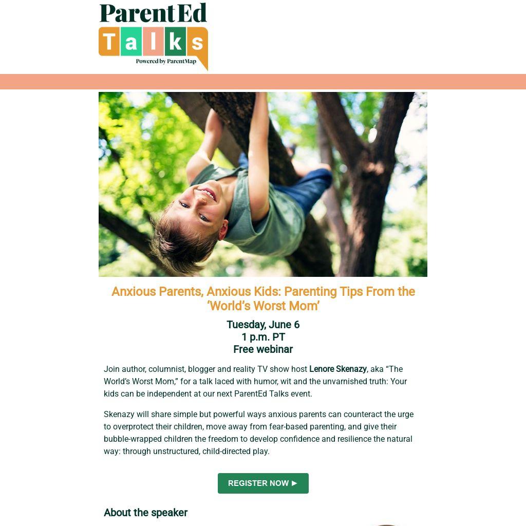 Join author, columnist, blogger and reality TV show host Lenore Skenazy, aka “The World’s Worst Mom,” for a talk laced with humor, wit and the unvarnished truth: Your kids can be independent at our next ParentEd Talks event.
