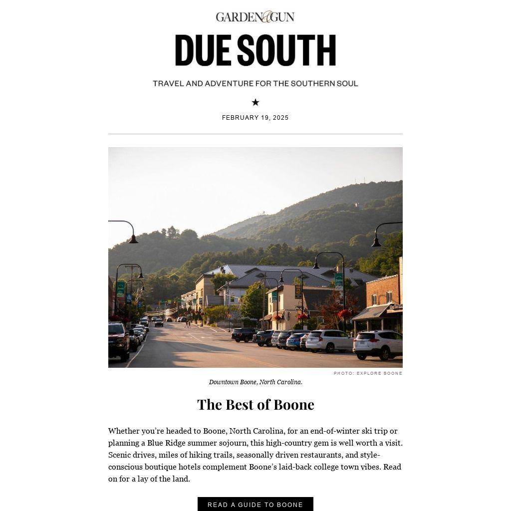 Whether you’re headed to Boone, North Carolina, for an end-of-winter ski trip or planning a Blue Ridge summer sojourn, this high-country gem is well worth a visit. Scenic drives, miles of hiking trails, seasonally driven restaurants, and style-conscious boutique hotels complement Boone’s laid-back college town vibes. Read on for a lay of the land.