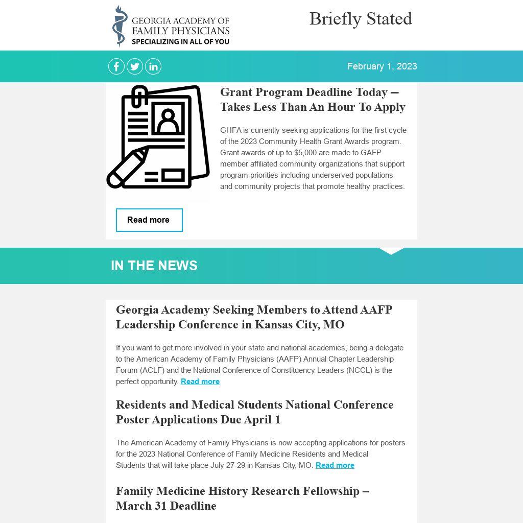 Copyright 2023 Georgia Academy of Family Physicians To ensure that e-mails from GAFP are delivered to your inbox, please add gafp@gafp.org to your address book or list of approved senders.