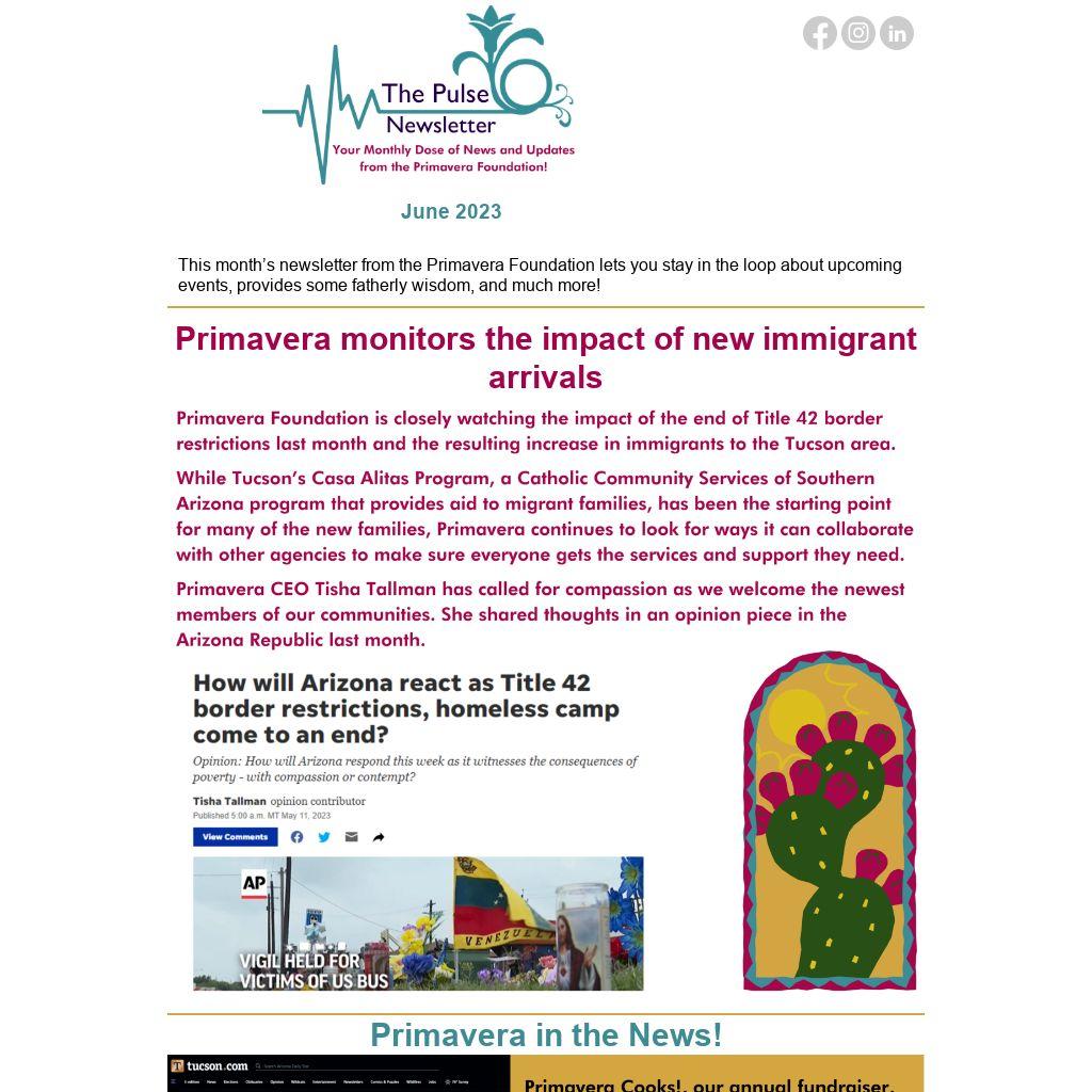 This month’s newsletter from the Primavera Foundation lets you stay in the loop about upcoming events, provides some fatherly wisdom, and much more!