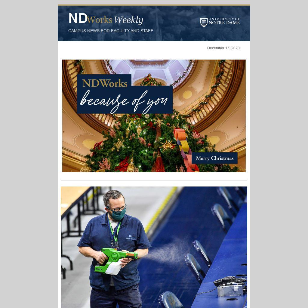 University photographer Matt Cashore happened to catch custodial crew leader William Vandygriff disinfecting essential areas in the Joyce Center before, between and after the women's and men's basketball games Sunday, Dec. 6. Thank you for all you do to keep us safe, Building Services!