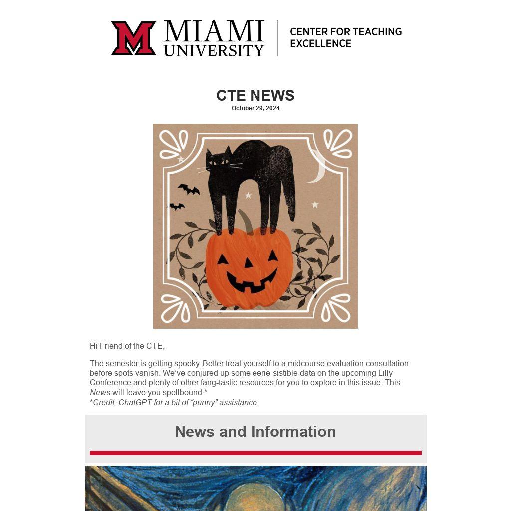 The semester is getting spooky. Better treat yourself to a midcourse evaluation consultation before spots vanish. We’ve conjured up some eerie-sistible data on the upcoming Lilly Conference and plenty of other fang-tastic resources for you to explore in this issue. This News will leave you spellbound.*