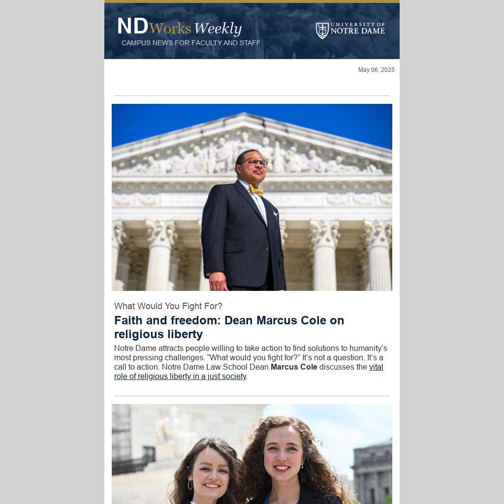Notre Dame attracts people willing to take action to find solutions to humanity’s most pressing challenges. “What would you fight for?” It’s not a question. It’s a call to action. Notre Dame Law School Dean Marcus Cole discusses the vital role of religious liberty in a just society.