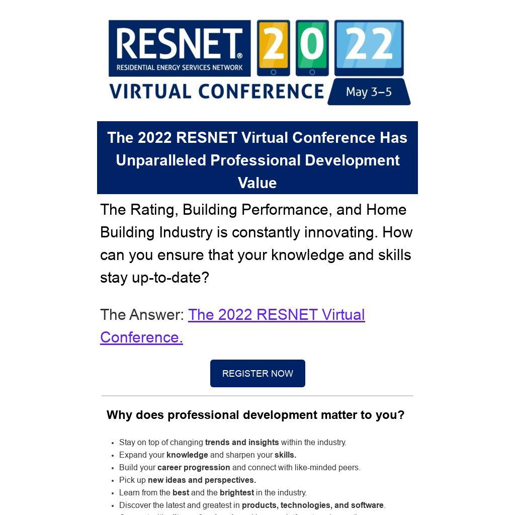 The 2022 RESNET Virtual Conference Has Unparalleled Professional Development Value