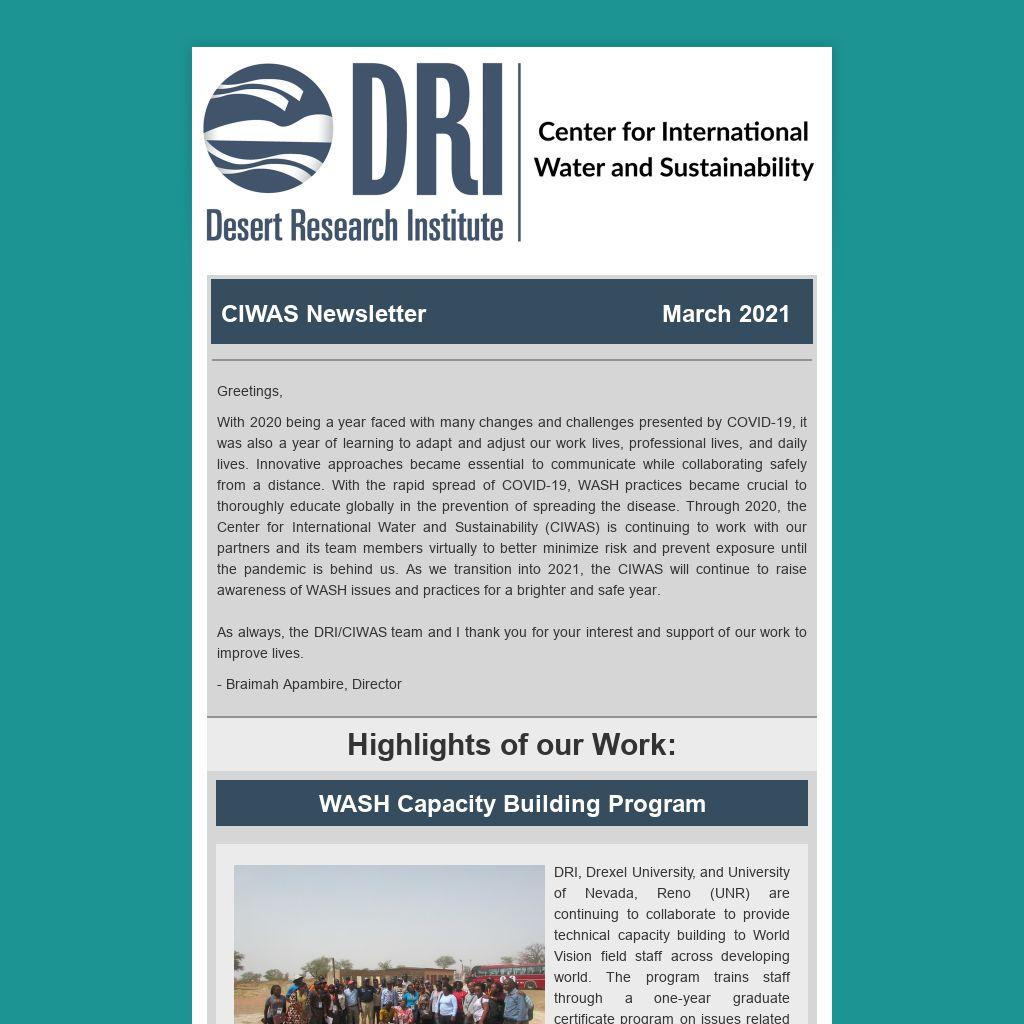 As always, the DRI/CIWAS team and I thank you for your interest and support of our work to improve lives.