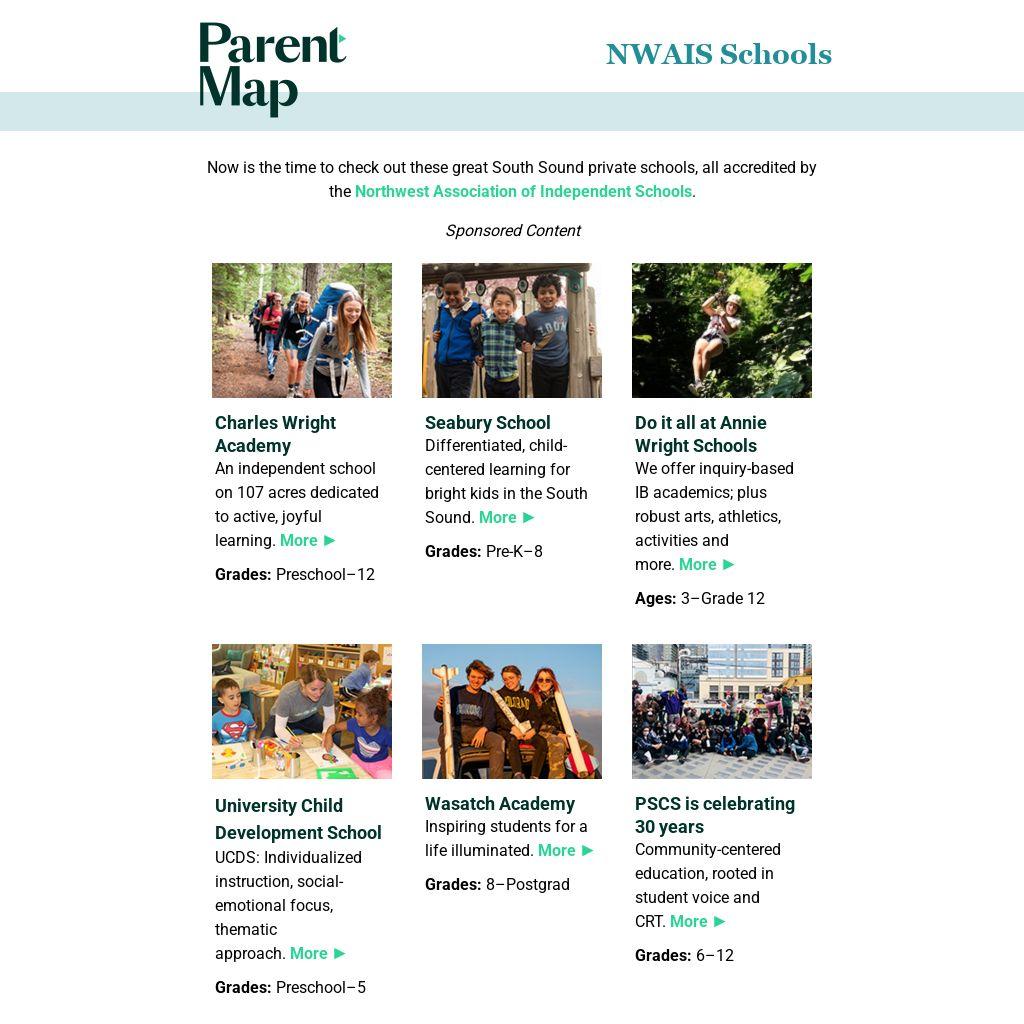 Flip through our NWAIS Schools Guide to learn about dozens of school programs and upcoming open houses in the Puget Sound area.