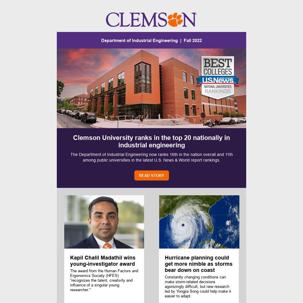 | Clemson University ranks in the top 20 nationally in industrial engineering